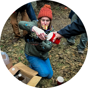 Fun fact: Xuân Mai is a veterinarian, and in addition to trail work she’s given her time and expertise to keeping the dogs of Evergreen healthy– even administering some impromptu first aid to trail builder’s dogs.