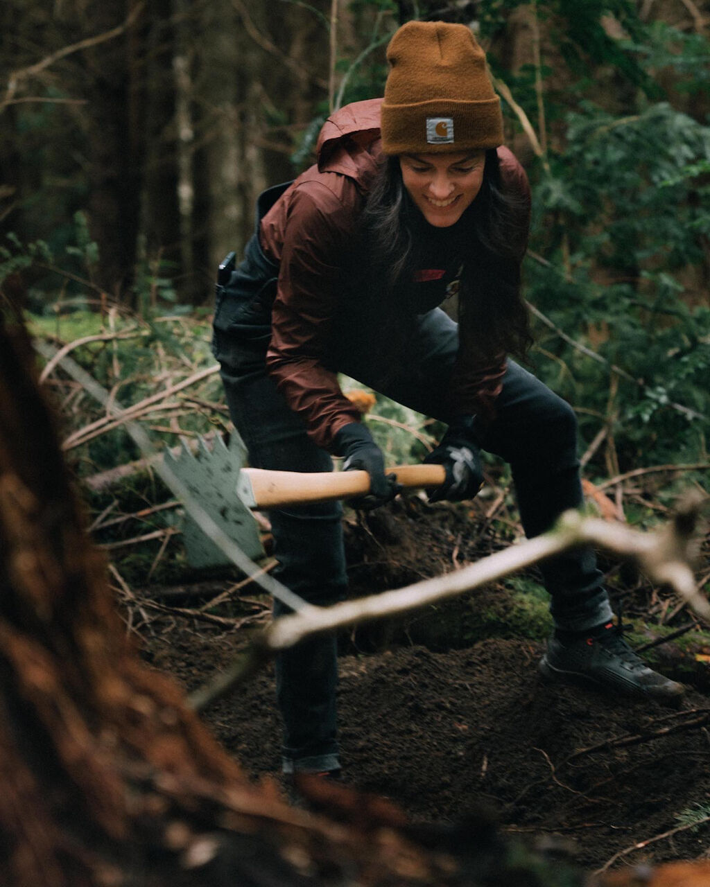 Heather is Evergreen's newest trail builder, but she's been working for Evergreen as an educator for years. And Heather, a natural educator and trail builder, is embracing her new role wholeheartedly, although she would be the first person to tell you she never dreamt she'd actually get paid to build trails. And build trails she does; just go check out Dirt and Debauchery, a trail at the new Port Gamble Ride Park Heather helped build.