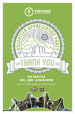 So to thank you, we’re inviting all our volunteers—trail workers, event volunteers, instructors—to the Seattle REI Flagship on December 2 at 6:30.
