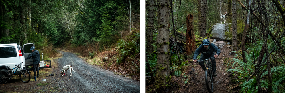 Cody and his dog Hank squeeze in an early morning lap of CCDH before a full day of trail work at Raging River.