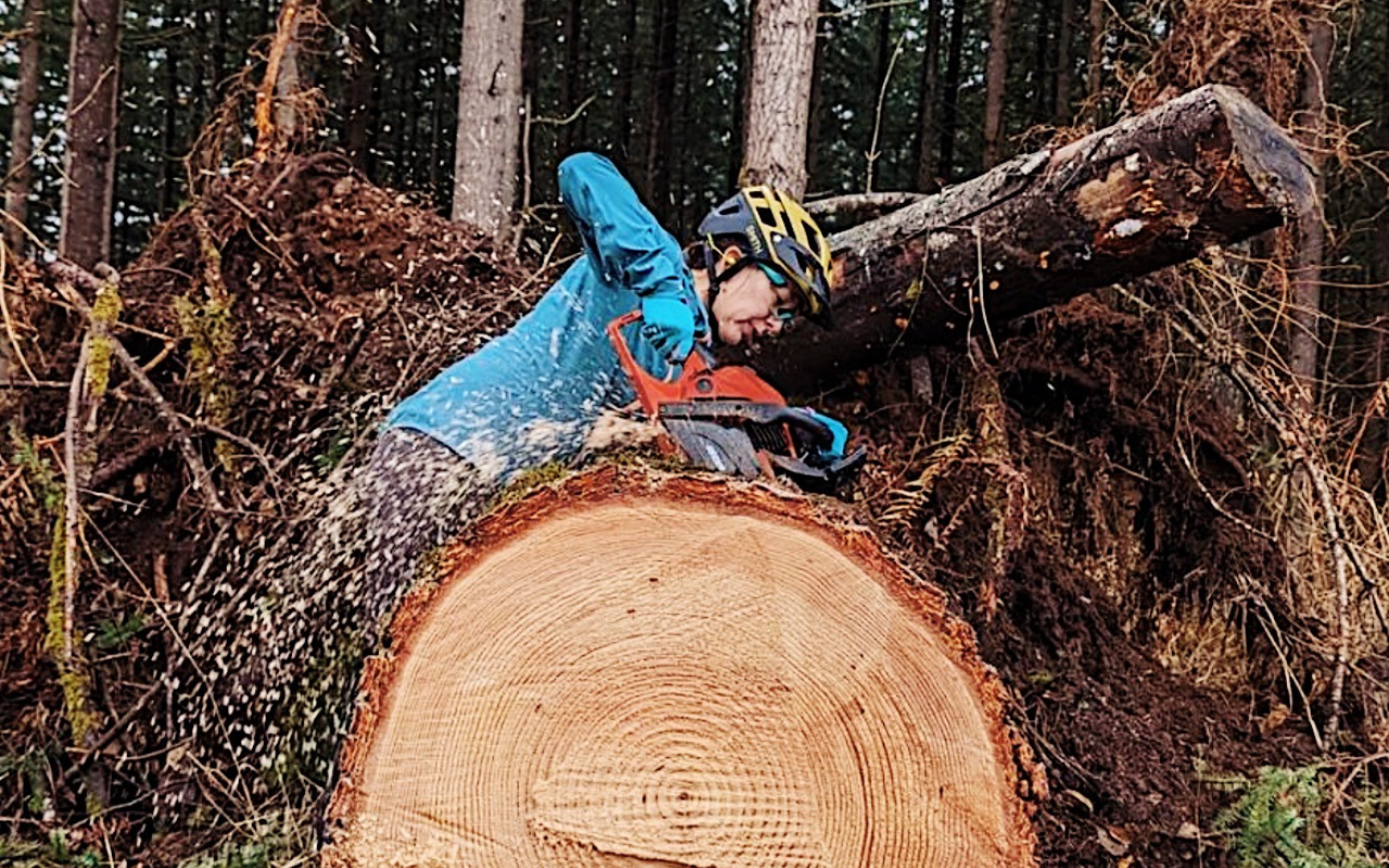 The program’s founding member, the late Len Francies, was the key driver in creating a collaboration between the Evergreen Mountain Bike Alliance (EMBA) and the Backcountry Horsemen of Washington (BCHW). Evergreen sawyers are trained and certified by the USDA through the program led by the BCHW. “It's a cool collaboration between two organizations, and together we have trained people from all over,” says Ryan Kitchen, Certified Evergreen Sawyer. “Evergreen and the BCHM have teamed up to train groups like the Washington Trails Association, King County, and Search and Rescue,” Kitchen has a lot of respect for the work it’s taken to get the program to this point. “We are standing on the shoulders of giants. Len Francies, Shawn Lorenz, and Bryan Connolly are some of the ones who blazed the trail for us to be here.”