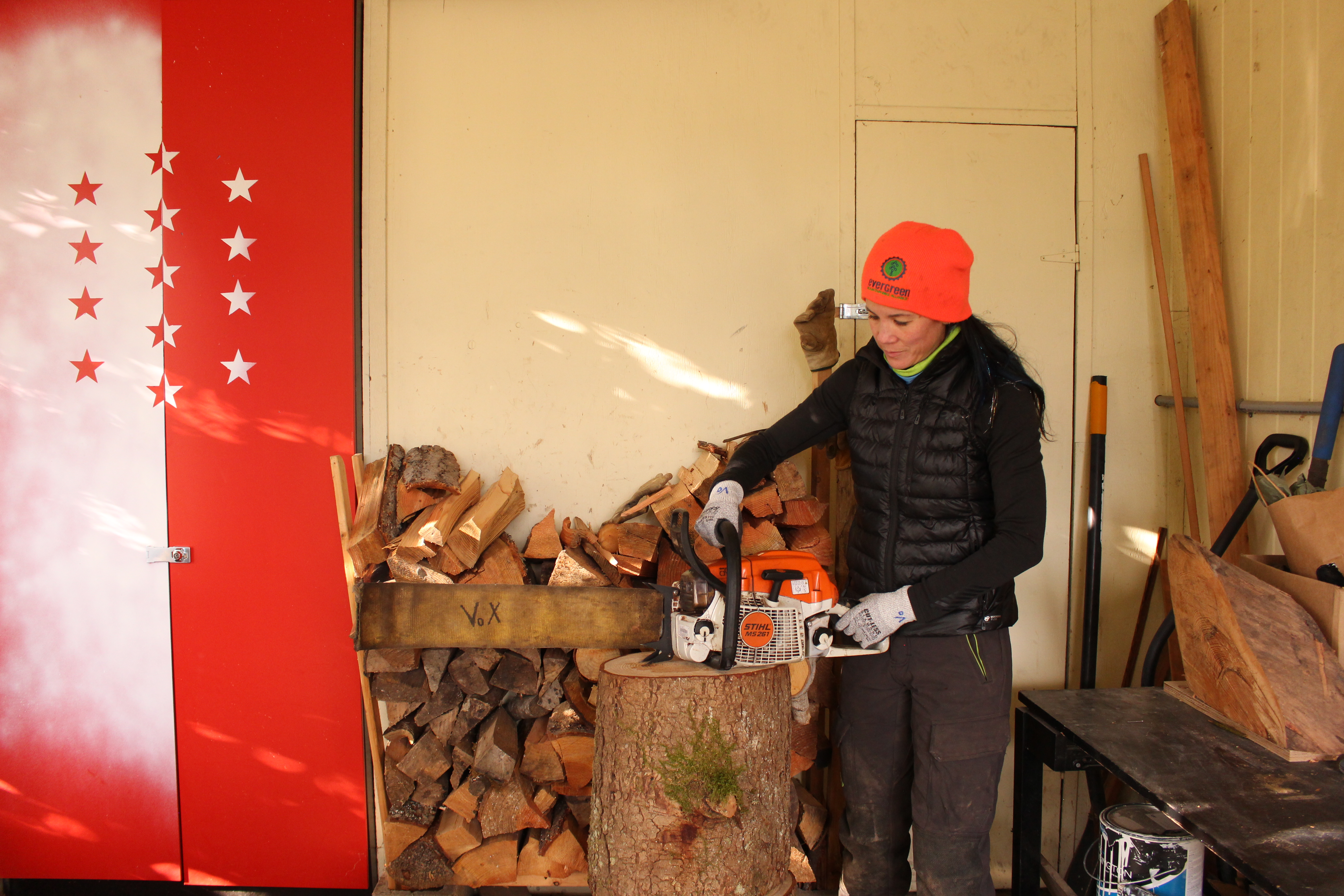 X is a veterinarian by trade and is sensitive to sound, which is why she is a cat person. She found it funny that she loved the chainsaw, which is anything but quiet. But X is a problem solver, and this is all about that. “When you saw, it’s like solving a math problem.” She says.