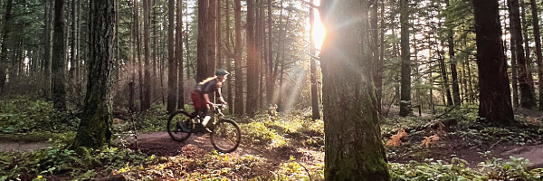 “Hustle and Flow” is a beginner-friendly 1.75 mi cross country that loops around the ~50 acre Douglas Fir Forest. Similar to Bootcamp at Duthie, it is smooth and flowy with lots of rollers and banked turns.