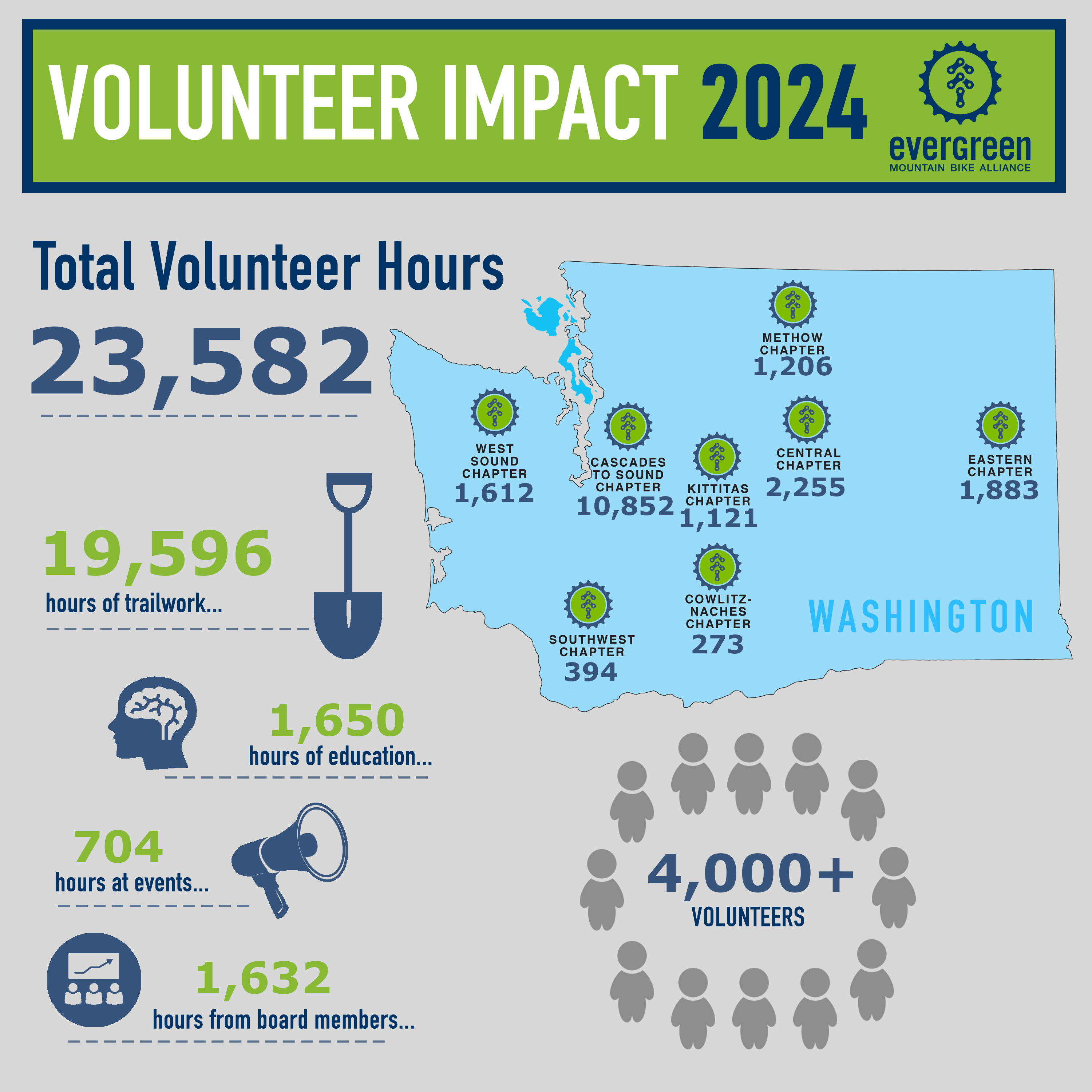Volunteers are truly the heroes of mountain biking in Washington and at the heart of Evergreen's mission. Your time as a volunteer makes you a central part of your community. It's also a blast! Volunteering on the trails, in the office, at an event, or on your chapter's board is a fool-proof way to make new friends.