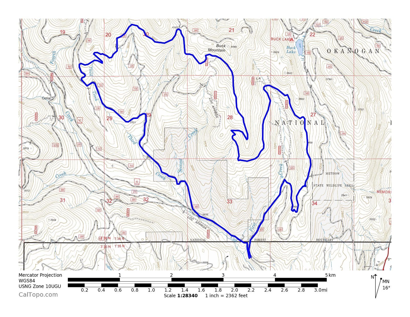 This is a beautiful 18-mile ride through mostly open sagebrush meadows. There are excellent views of the Chewuch River Valley, the Methow Valley, as well as nearby and distant mountain ranges. The ride starts at Buck Lake and connects to the Buck Mountain Trails via a 3 mile spur. The Buck Mountain Trail can be ridden in either direction, but clockwise makes the best use of downhill single track. An alternative starting point is the Buck Mountain parking area, with the Buck Lake Trail added on to the final section of the Buck Mountain ride.