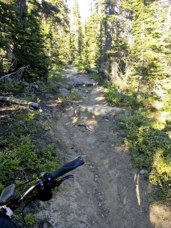 Beautiful spot, but the trail is badly blown out. Prepare to walk your bike often through wash-outs and mud. Snow still on the saddle. I would wait another month for this trail to dry out a bit more. Definitely a tougher ride than described—the 2700' ascent was brutal. That said, the ride down wa...