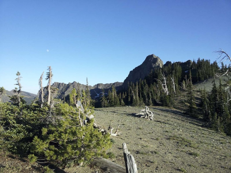 Parked at De Roux campground. Forest pass required. Up road to trailhead, riding the loop CCW. Ride up to the saddle is a grunt. Take the time to look back as you climb for the amazing views. As you crest the saddle, the trail starts down straightahead, then to the left side - look for the small...