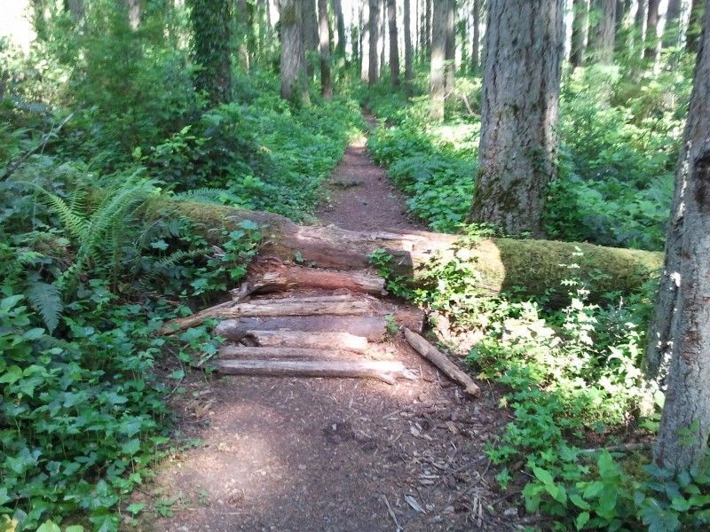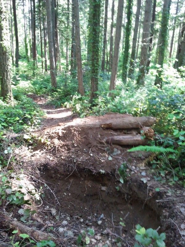 If you live near Tacoma and you are new to mountain biking, this trail is for you. For those who are more experienced riders, there are still some challenging sections. There is a loop that goes around the perimeter of the forest and a bunch of single track in the middle. In the center you will find a relatively flat, cleared out area with jumps and log obstacles. Trails range from wide, even and gravel to narrow, heavily vegetated and rooty. This a great place to develop your skills. Obstacles range from beginner to intermediate. Some of the jumps could be considered advanced.