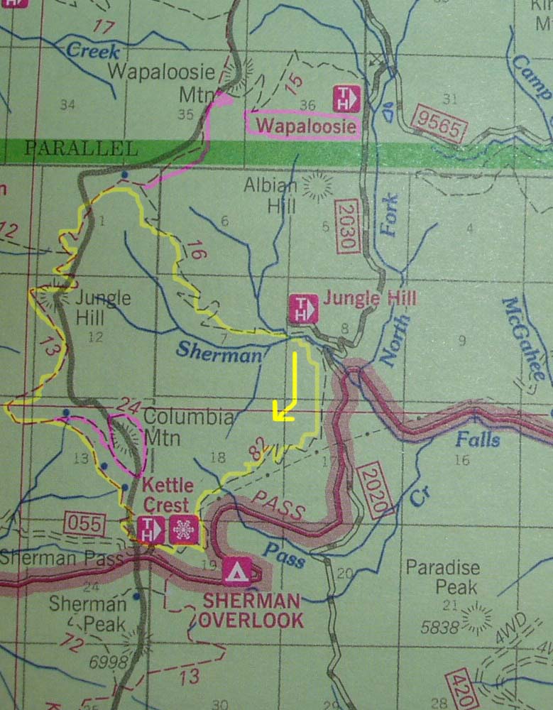 This trail system consists of over 110 miles of unique mostly sub alpine singletrack all currently open to mountain bikes. The Kettle Crest Trail itself stretches for an impressive 40 miles reaching from the Colville Indian Reservation to the North nearly stretching into Canada. Elevation of the trail varies from the bottom of the spur trails ranging mostly 3 to 4 thousand feet of elevation. Kettle Crest itself runs at around 5 to 6 thousand feet in elevation, as the trail constantly climbs up and down various peaks and saddles.