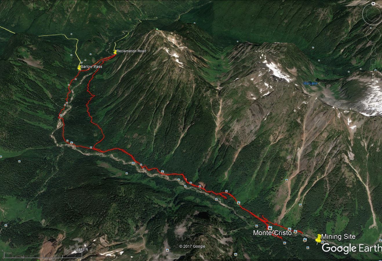 Monte Cristo is a historic mining town that has been a favorite family hike and step back in time. It is located at Barlow Pass on the Mountain Loop Highway with a reclamation road built a couple years ago for a soil mitigation project. The addition of the road makes for a nice 10 mile loop. Forest Service Pass required at Barlow Pass.