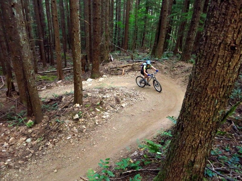 The first several miles amble up Cedar Butte through pristine forest, then turn east and ascend the flanks of Mt. Washington. As you climb, the sounds of I90 will slowly fade away. The tread is buff and non-technical, but don't let that deceive you into thinking the climb will be easy - although sculped to maximize ascent efficiency, the incline is relentless. The good news is that all translates to a virtually pedal-free blurred roller-coaster ride back down! This will require some care, as the trail is two-way.