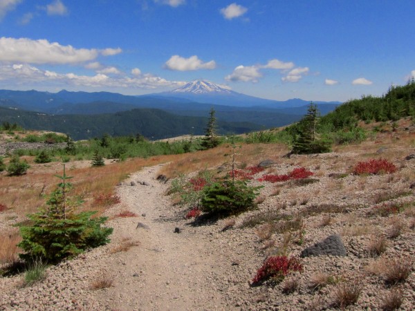I found the climb up to the top of Ape Canyon to be quite challenging for a 60yr old rider on a vintage steel bike. However the view was worth the three mile climb with it's steady (but never too steep to ride) grade and all the huffing and puffing along the way. The trail through the woods is mostly smooth, in great shape and it is a miracle how those trees survived the eruption. Once at the top the trail flattens out and opens up to a pumice surface that crosses a generally desolate landscape all the way to Windy Ridge. I rode sixteen miles altogether and it made for a nice 4-5 hour ride though it could be done faster but why rush through this beautiful and unique area. Everyone should do this ride at least once. You are always in the shadow of St Helen's and Mt Rainier, Mt Hood and Mt Adams can also be seen. Of course the ride back down was a blast - watch out for hikers on your way down.