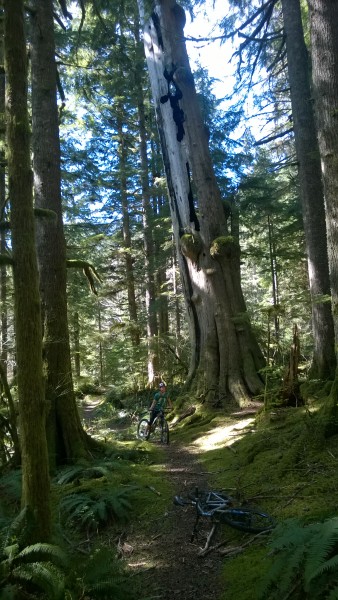 We had a beautiful Saturday ride, with unseasonably warm weather. Despite packed parking lots, we didn't see a single other biker on the trail. We found the directions super confusing, though in hindsight they are accurate. After the blue gate, you stay to the left at the first ambiguous spot. After that, you continue until the road takes a left at a rusted gate. Insted of taking this left, you go right/straight over the large water bar onto the actual CCC road. Views were great without leaves on the trees. There were lots of stream crossings and downed logs that required dismounting. After going through the extension, which is the best/prettiest part, we took the middle fork road back to North Bend to save some time, stopping by Scott's Dairy Freeze.