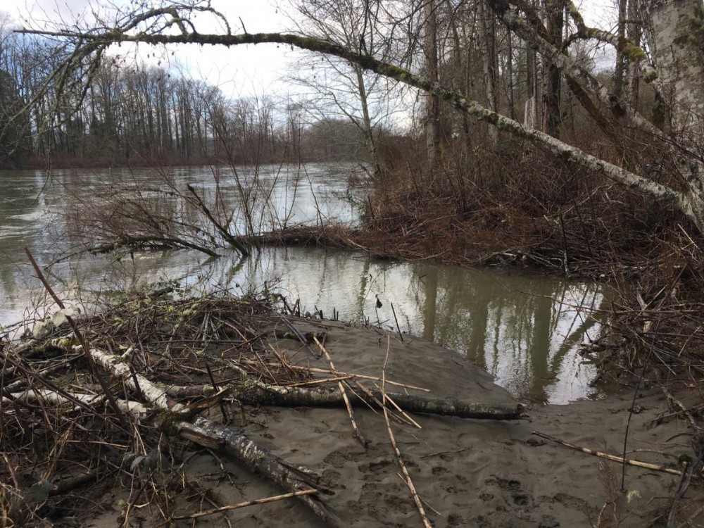 Snohomish side access was closed so you had to get to the park from the Monroe side. Trails were well drained except for a couple spots, but the soil was so soaked, trees were falling in many spots. River Trail has a big tree across it for the big saws and I cleared a tower climbing trail obstruction. It was a little bit of a work but seeing the River level was impressive. Compare my 9/3/2018 report's river bed photo to the report image used this time. GPS Track and pics this time are here.