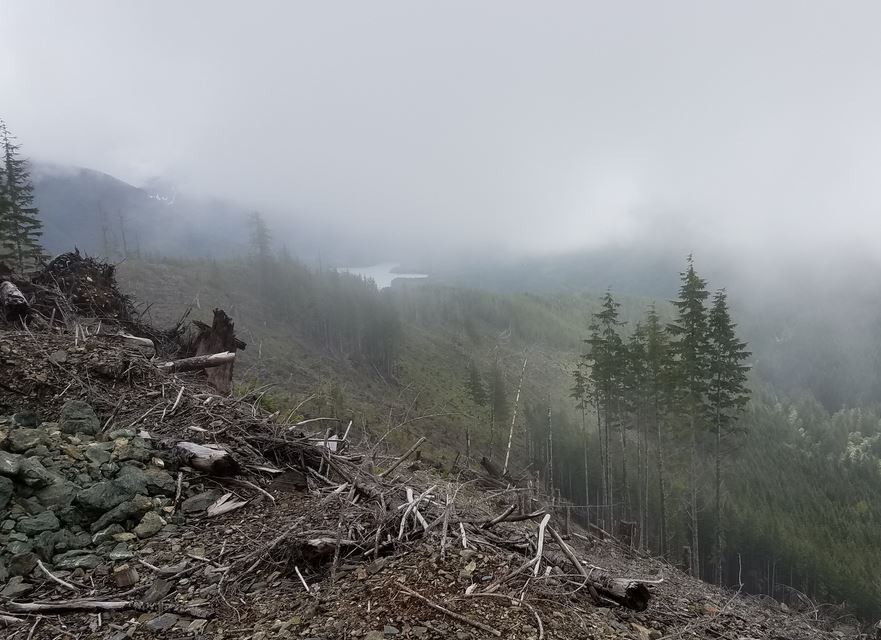 Began early in the morning fog hoping the drier day would help the sun burn off the fog by the time I reached the ridge. I started climbing the west side of the ridge and took two spur roads to explore. One spur had a young bear that ran up hill quickly into the trees as my tires alerted it early. The location was a ways from the main road and there was no signs of others. Across the ridge line was all clear of any snow, but the fog was thicker and lower visibility. After bombing down to the East DNR gate, I returned on Sultan Basin Road back to the car. A lot of target shooters are getting out there in the morning. GPS track and the pictures are here.