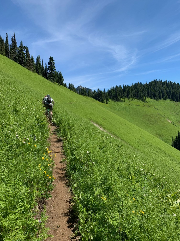The avalanche debris field is rideable, and there's just one tree down on the road to trail part. Rode across one small patch of snow near the top. The Alpine Traverse was spectacular as usual. The only warning is be wary of riding on Sunday because getting back to the Seattle area the US 2 West bound traffic is horrible.