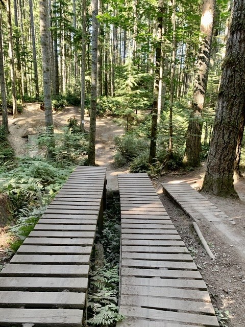 I headed back to Duthie to learn how to jump gaps. First I walked Gravy Train, and then started hitting jumps and adding another 2-3 with every descent. They get bigger further down the trail, and by 10:00 AM I'd sent them all except the last (biggest) one. I'm saving that for next time!