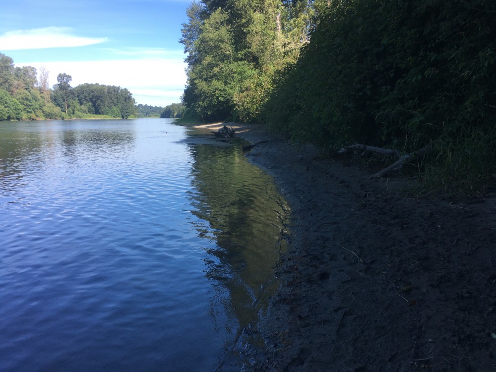 The task today was just to clear the full length of the River Trail from nettles and brush. So I went down Lower Springboard and Meetcutter and then started at the top of the River Trail and machete'd all the way to the river. It's ready for you to run the full length now. I climbed up to the summit viewpoint and returned to the car via Ewe Tube. It was a constructive morning. Track and river level pics are here.