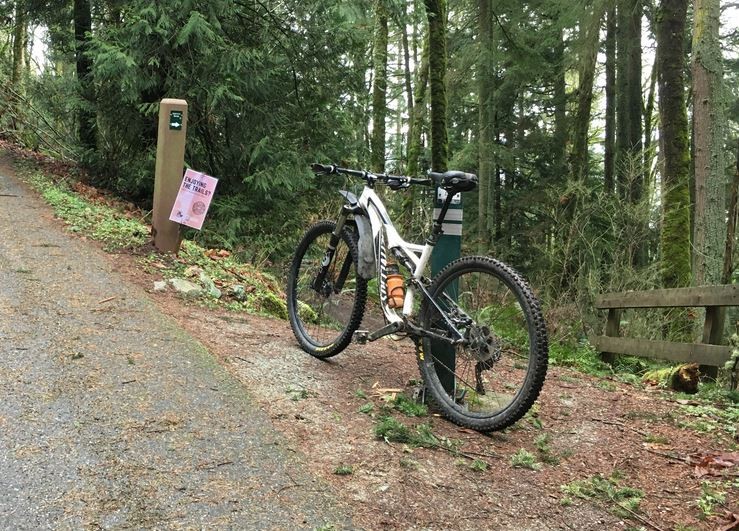 Went up to Mount Vernon this morning to do some runs up there since farther south is still soggy from the rains yesterday. Pitch and Roll was fun, almost hero, so I went down it three times and then went back up to do Bonnie and Clyde and La Z Boy to get back to the car. The Bonnie and Clyde closure is due to the following powerline sagging over the trail.