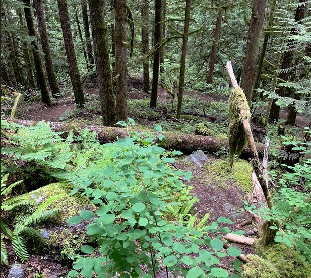 Made many runs on Logger and then Faller for fun, and then High Lead and Hooktender for more fun. The Hooktender tree should still be removed even though there is a ride around. The technical route is still OK but really isn't a fluid route now. My run down Millwright was immediately stopped after the first downhill berm because of a rotten tree fall. I broke it up to clear the trail but a stronger tree fall is obstructing a landing for those without enough speed. You can hop or roll it, but when wet, it is a slippery landing hazard! I'd clear it. The dirt was very well drained and hero today. GPS track and pictures are here.