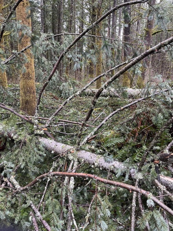Rode Master Link up to Iron Brigade, Anaconda, Python, Snake, return on Rte 66. Henry's Ridge trails are in descent shape with a carpet of doug fir boughs. There are two notable live trees down blocking Anaconda and it was some work getting past them with a bike. This is going to be a big clean up job. Would love to take it on but I don't own a chainsaw. Aside from that, the trails are in good winter shape, free of standing water and totally rideable. Formal and infiormal signage is holding up as well.
