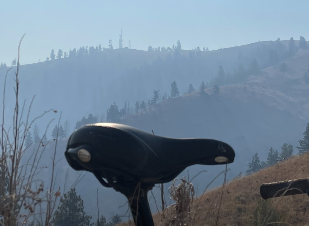 Got an early start at 6:45 this morning at the bottom of the Butte and made three summit road climbs and descents down the downhill trail. The trail is in great shape and dry. The Pioneer fire had filled the lake valley with smoke but it wasn't choking or overwhelming. The Trailforks ride log and some pictures are located here.
