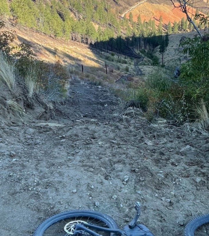 Before the Labor Day weekend crowds innandate the Lake Chelan area, I wanted to get a Butte run in to assess the impact that the Stayman Flats fire had on the climb up or the downhill. I'm happy to report that there is no need to worry about the condition of the trail or the road climb up. The burn scar is impressive as you get up top and scan the southwest flanks of the Butte but your ride down will be fun still! I took several pictures in my Trailforks Ride Log and one that really impressed me the most was the fall line bulldozer run made to create a secondary fire line (the report image)!!! The driver probably had a couple of exciting moments during that streak. Anyway, enjoy the Butte at your convenience! OR, enjoy that bulldozer run! lol