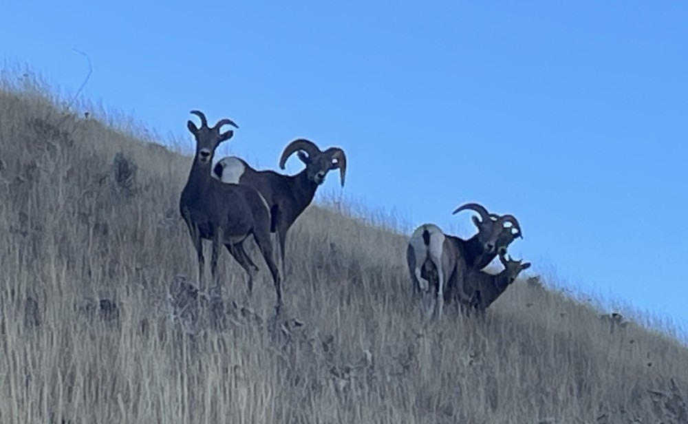 This morning, I began my ride from the trailhead, climbed to the Winter Traverse, and then over to the Butte Road to get to the summit. Just before the parasailing launch site, I met up with some buddies from the Ram family. Luckily the father didn’t charge me. Probably saw my helmet and knew he couldn’t win. lol The look they had towards me was almost as if they were thinking, "Damn, I wish I had his bike!". We shared glances for several minutes and then they headed down their quadruple black diamond goat route where only a drone would survive. They are amazing!