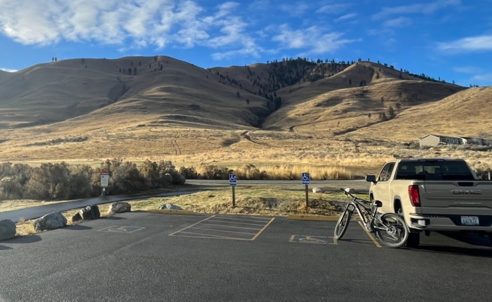 The snow level for the next couple of weather fronts is dropping below the top of the Butte! I needed to get one more day of the hero soil before traction, elevation, and conditions, shut it down for the season. The ride began in early morning sun and partly cloudy skies and clouded over at the end. The first run was good but I did lose my line on a narrow downhill traverse. I was able to recover back to the trail but almost went down the fall line. Farther down, I startled a 3-point buck who ran across the trail. Luckily it was 100 feet in front of me!
