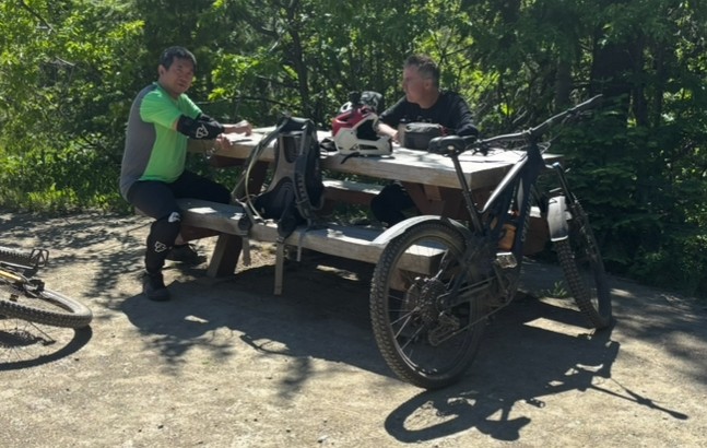 Started the ride this morning a little after 9 o’clock at the Ski Hill lot and my buddies and I went South to climb Ranger Road. From the top, after the Connector trail, we descended the Boa and then down to the bottom of the Canyon to climb up to descend both upper, and lower, Ribbed.