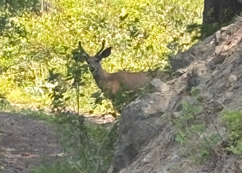 I set up the RV for the family up in Plain and went for a exploration ride this morning at the Leavenworth Ski Hill. After parking in the main lot and gearing up, I began the climb up the NUT to the summit views I wanted. First, I took the roads up to the Punk Rock Lookout hoping to see a parasailer launching but no one was up there midweek. I got my views of both sides of the ridge and then headed back down to climb back up the roads to the summit just North of Tumwater Mountain. I almost hiked up the trail to the top of Tumwater, but I wanted an “MTB only” trip as best as possible. Near the top of the second summit I caught a husband and wife couple grazing and got the report image of the husband while the wife took off. :-)