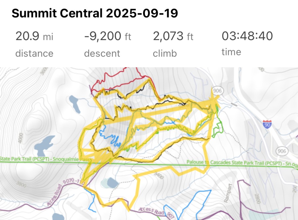 I wanted to do at least one more bike park this Summer before I put my Enduro into the shop. I drove up to Summit at Snoqualmie Central, and using my EMBA member discount, got my ID ticket from the kiosk and off I went up the chair. My last visit was three years ago so I started on Green Party and warmed up to the others except the double blacks. All of the trails have seen better days and could use some rain but it is the end of the season there. The rocky and rooty tech and late season breaking bumps, definitely fatigued my hands and arms so I took a break for lunch. Then a call from home of a plumbing failure sent me home for the day. Get your Snoqualmie fix soon since they finish bike park ops this month!