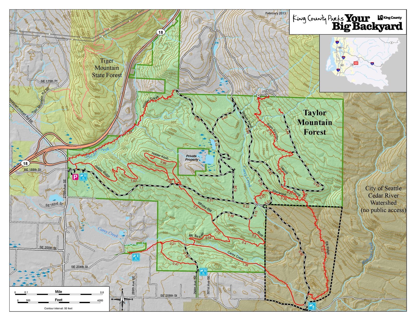 King County Parks, has subcontracted...and will start in a few weeks / early summer to enlarge the parking lot. It will be closed approximately 2 months. Tahoma chapter BCHW cleared Holder creek trail on National Trails Day