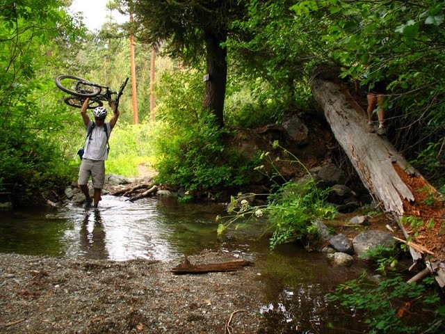 This is a great out-and back ride through mostly forested terrain. The outbound trip climbs a net of only 1,200 ft., but the descent on the return trip makes for a fun return. Despite the name, the trail is always some distance from the river. There are several stream crossings. Abundant camping and hiking opportunities are found along the Twisp River Road.